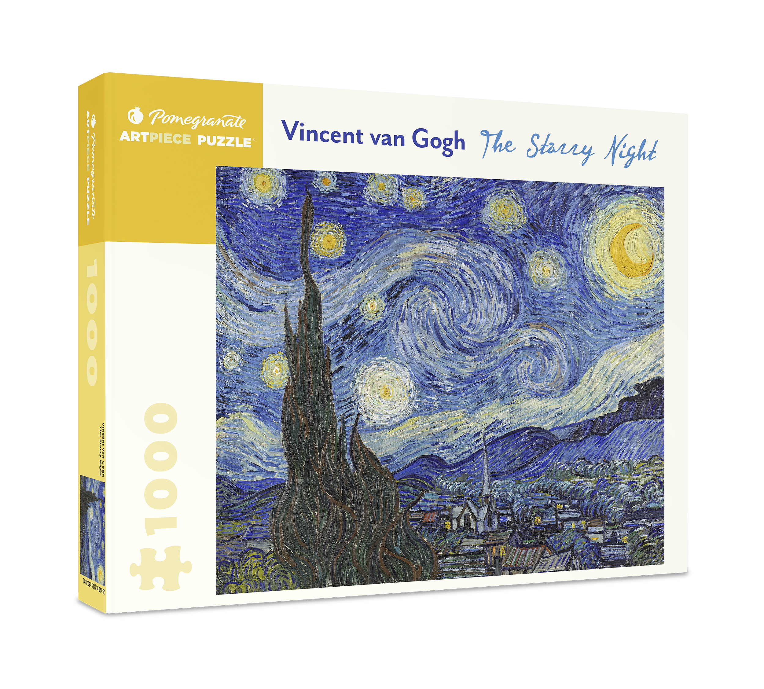 A swirling starlit sky over a peaceful, timeless landscape—Vincent van Gogh’s The Starry Night is among the world’s most immediately recognized works of art. The energetic impasto of his spiraling stars is juxtaposed against neatly outlined houses nestled ’round a church. The painting, created during the turbulent last year of the artist’s life, might have been inspired by the heavenly view from his room in a Provençal asylum. Despite being confined, he continued to make art and found a measure of joy in expressing nature’s fluctuations in vivid color. This 1000-piece jigsaw puzzle may put you in mind of Van Gogh’s words, “The sight of the stars always makes me dream.”