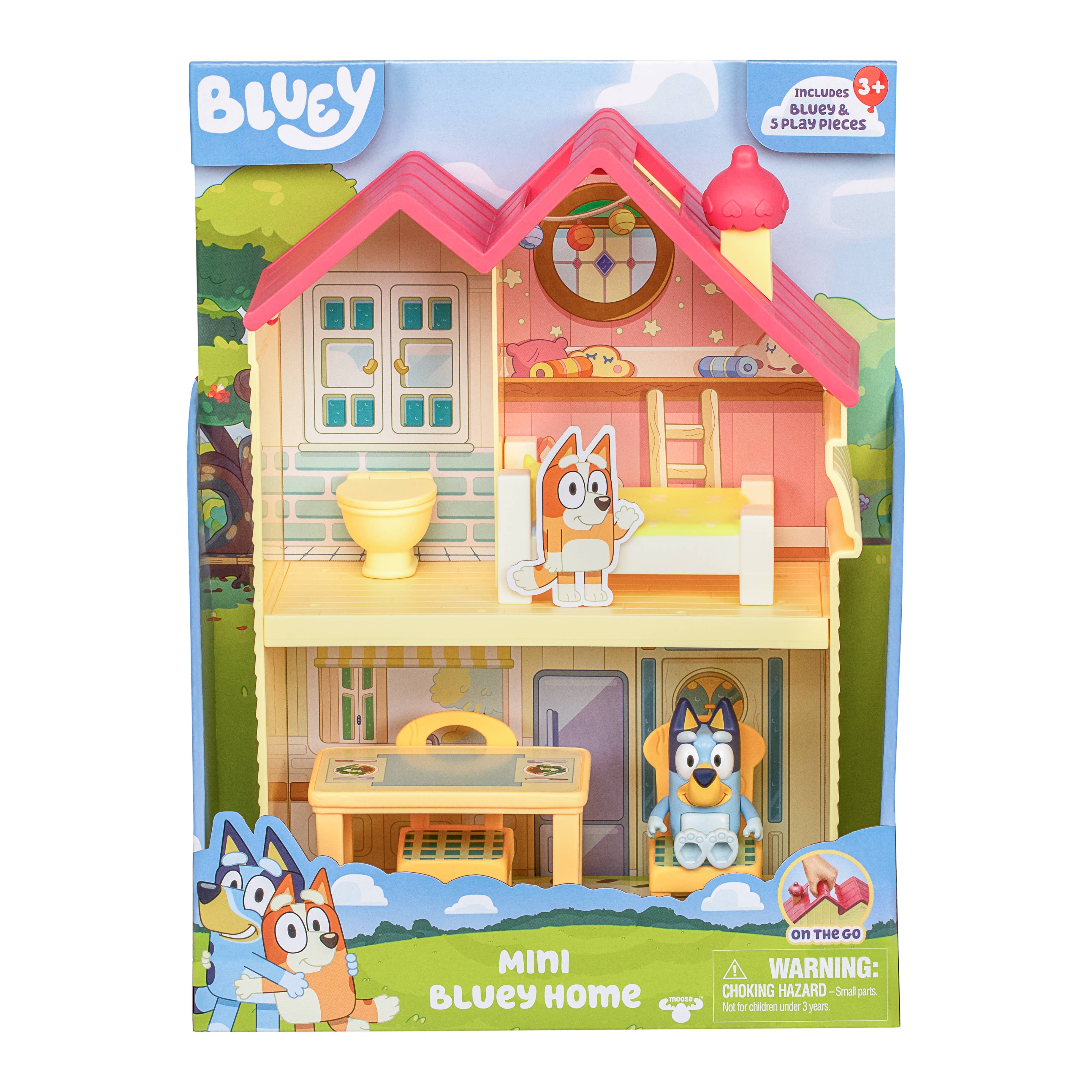 Recreate some of the most memorable moments from Bluey in the Mini Bluey Home playset. Smaller in size but big in features, this fun-filled playset is full of details. There is plenty of space to play with three different rooms and removable furniture. Kids will love to play with the included 2.5" articulated Bluey figure with moving arms and body. The Mini Bluey Home even comes with a carry handle for take anywhere play!